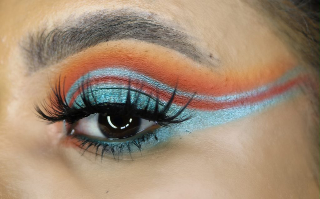 Here are some glam makeup looks I have created; a dramatic purple graphic liner and a cubed sunset square .
